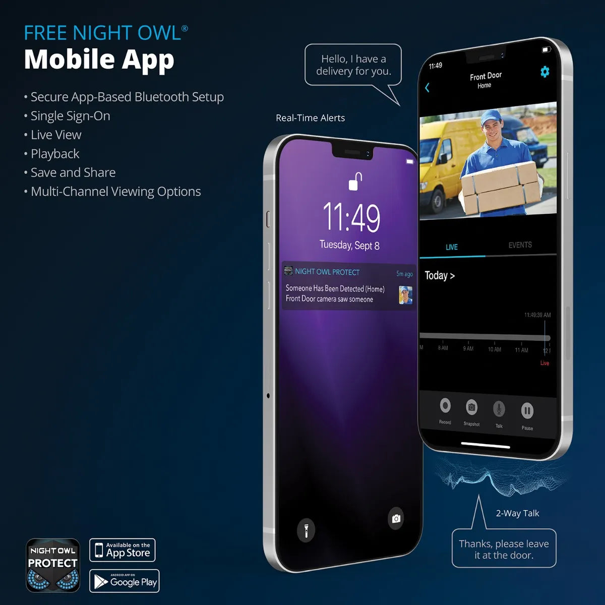 (3) Night Owl® apps are free downloads compatible with Apple® and Android™ devices only. Compatibility at the time of manufacturing. Future Android™ and iOS® updates may affect the app experience.