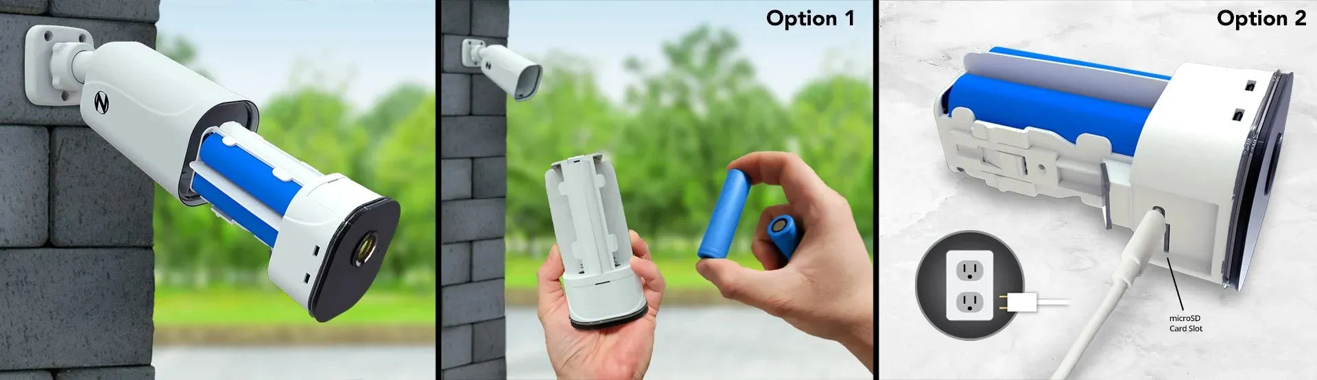 - Option 1: Never miss a beat! Easily swap out the batteries, while the camera stays mounted. Charge the dead batteries using the Night Owl Charger (sold separately).