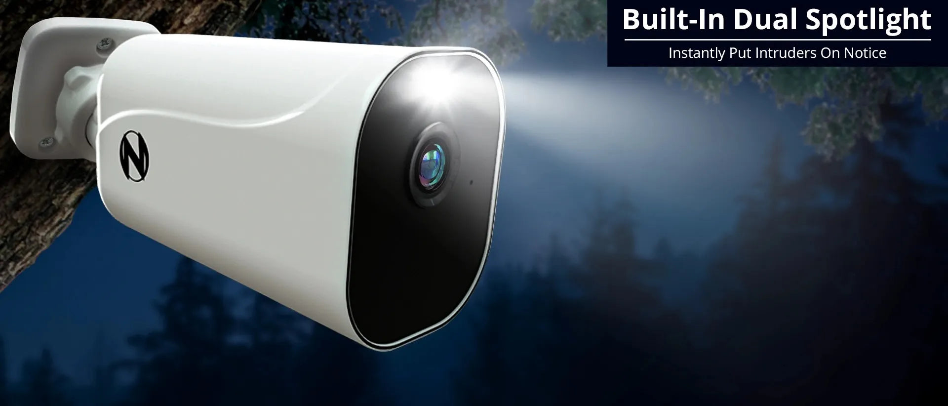 Your wire free cameras include built-in dual spotlights which turn on when a human or vehicle is detected to deter burglars and vandals.