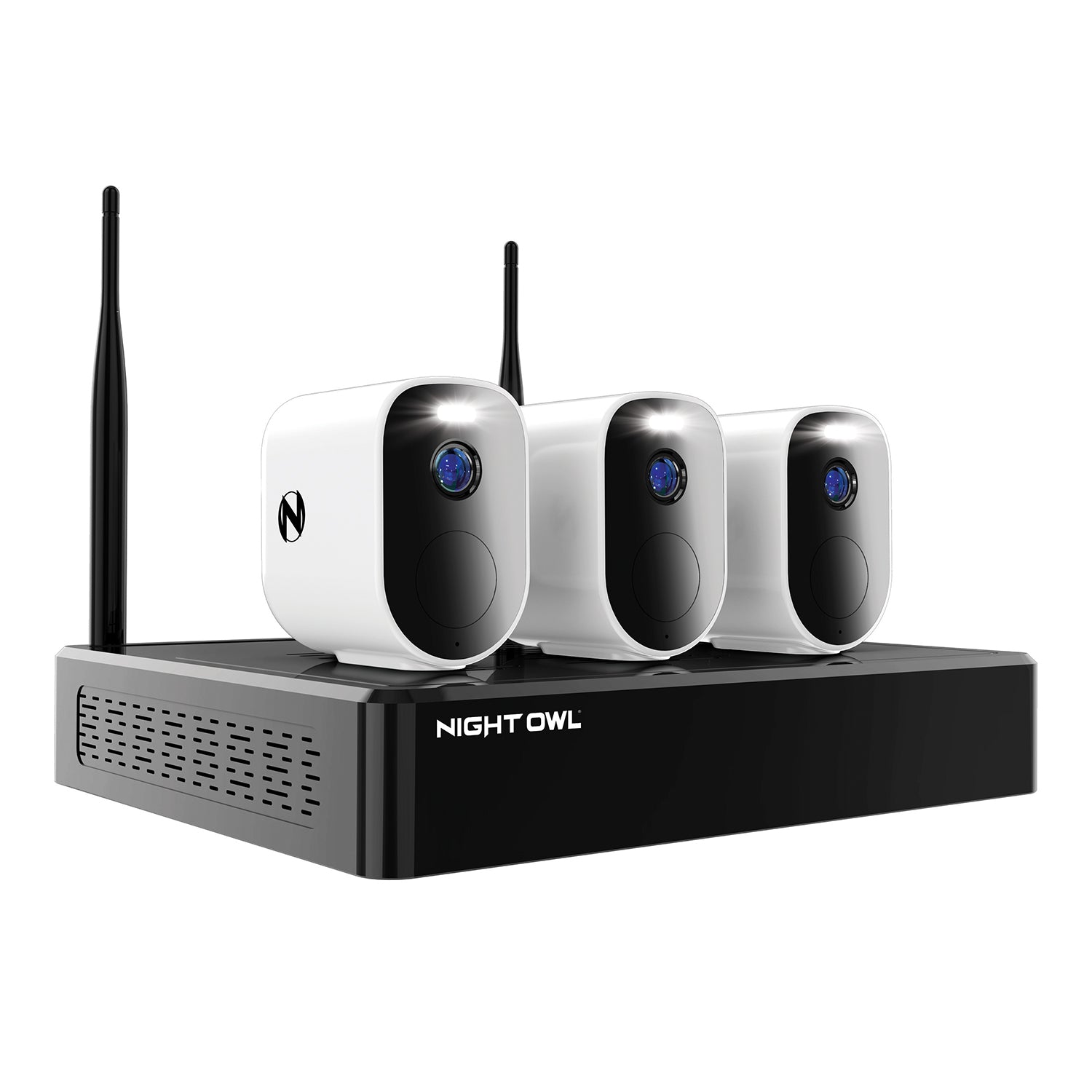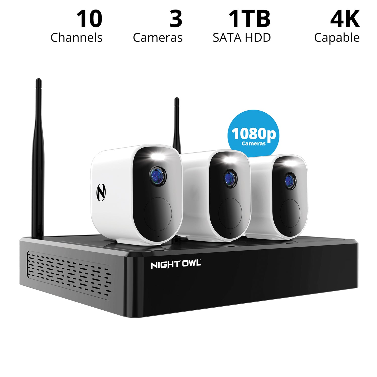 10 Channel 4K Bluetooth Wi-Fi NVR with 1TB Hard Drive and 3 Wire Free (Battery) 2K Spotlight Cameras with 2-Way Audio and Audio Alerts and Sirens
