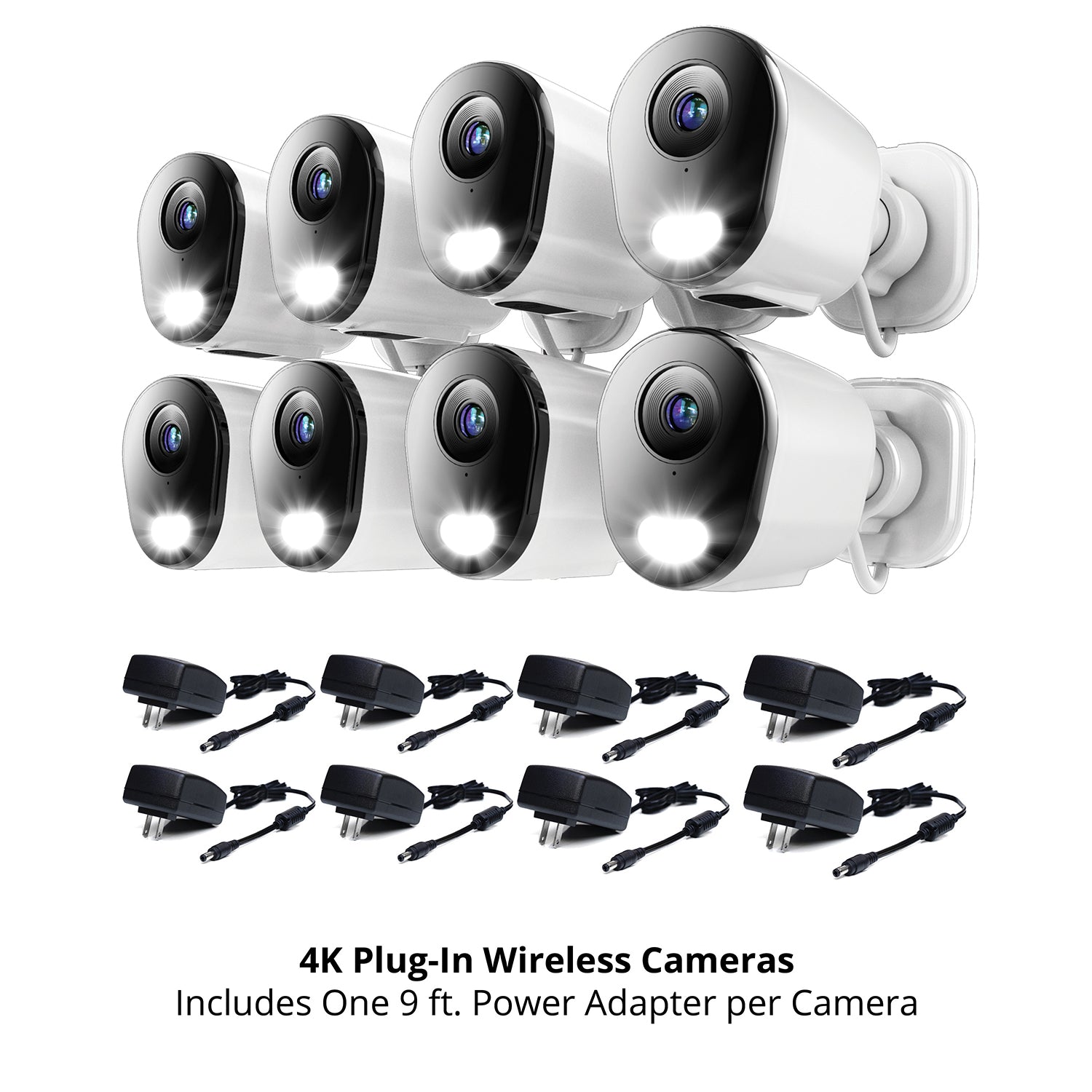 - Includes 8 Plug-In 4K Wi-Fi Cameras