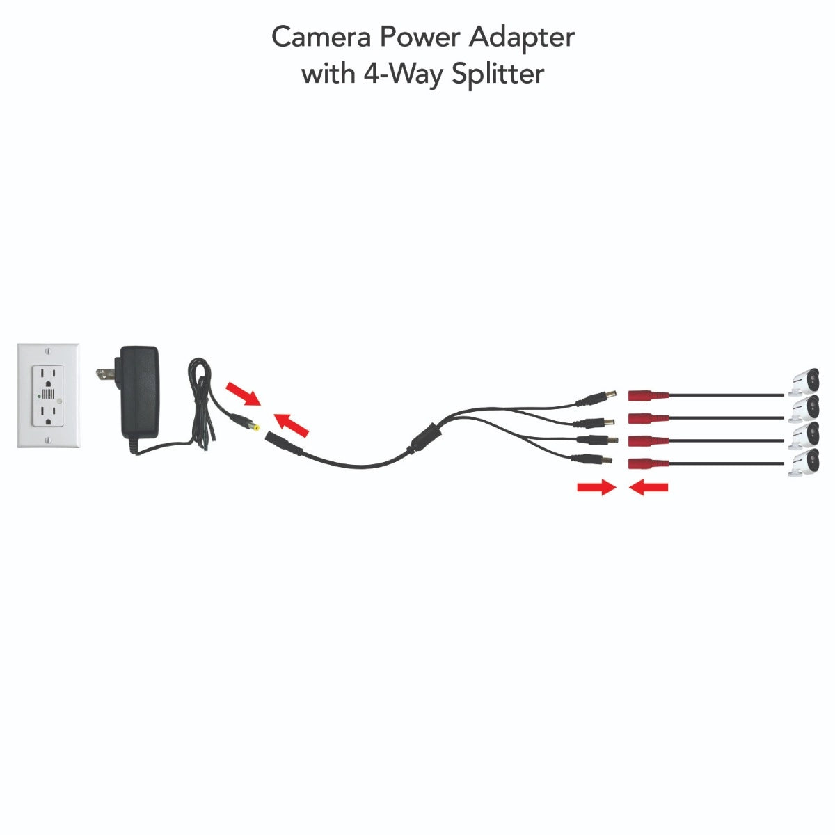 15V-1.6A Camera Power Adapter with 4-Way Power Splitter - Powers up to 4 Cameras