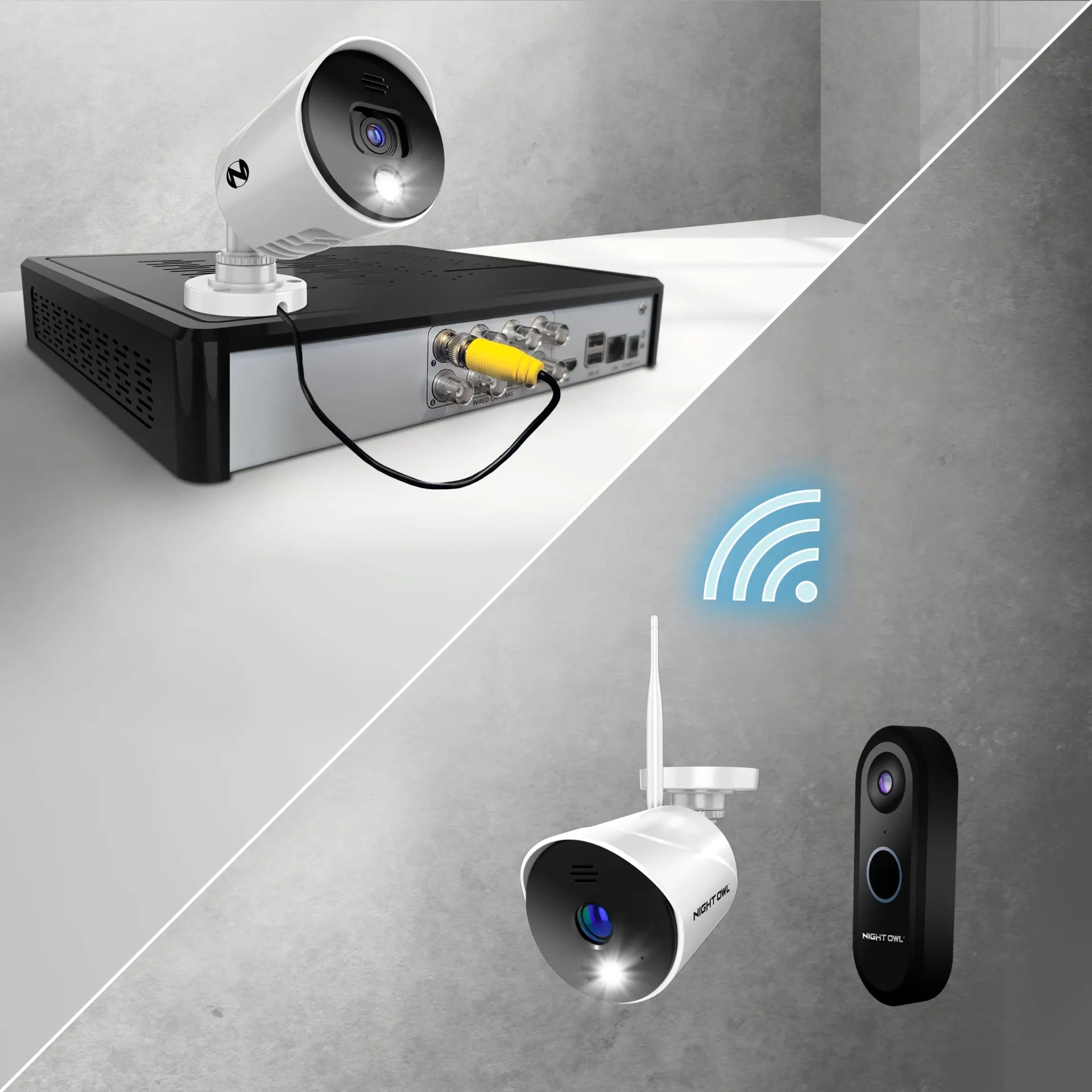 Even though the security system itself is wired, you can add up to 4 Night Owl® Wi-Fi compatible devices for more flexible and comprehensive coverage.