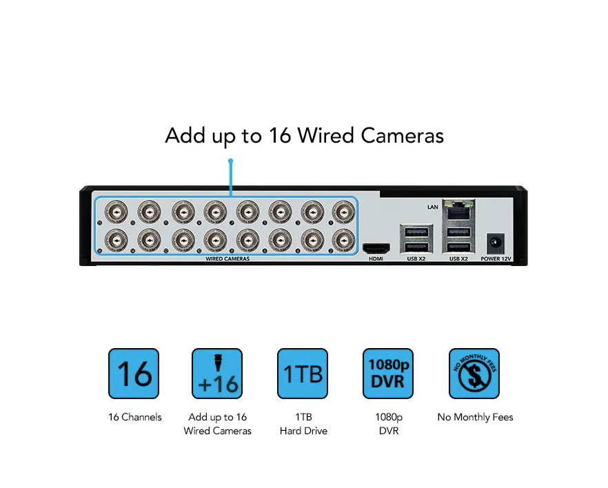 16 Channel 1080p DVR with 1TB Hard Drive - Add up to 16 Total Cameras