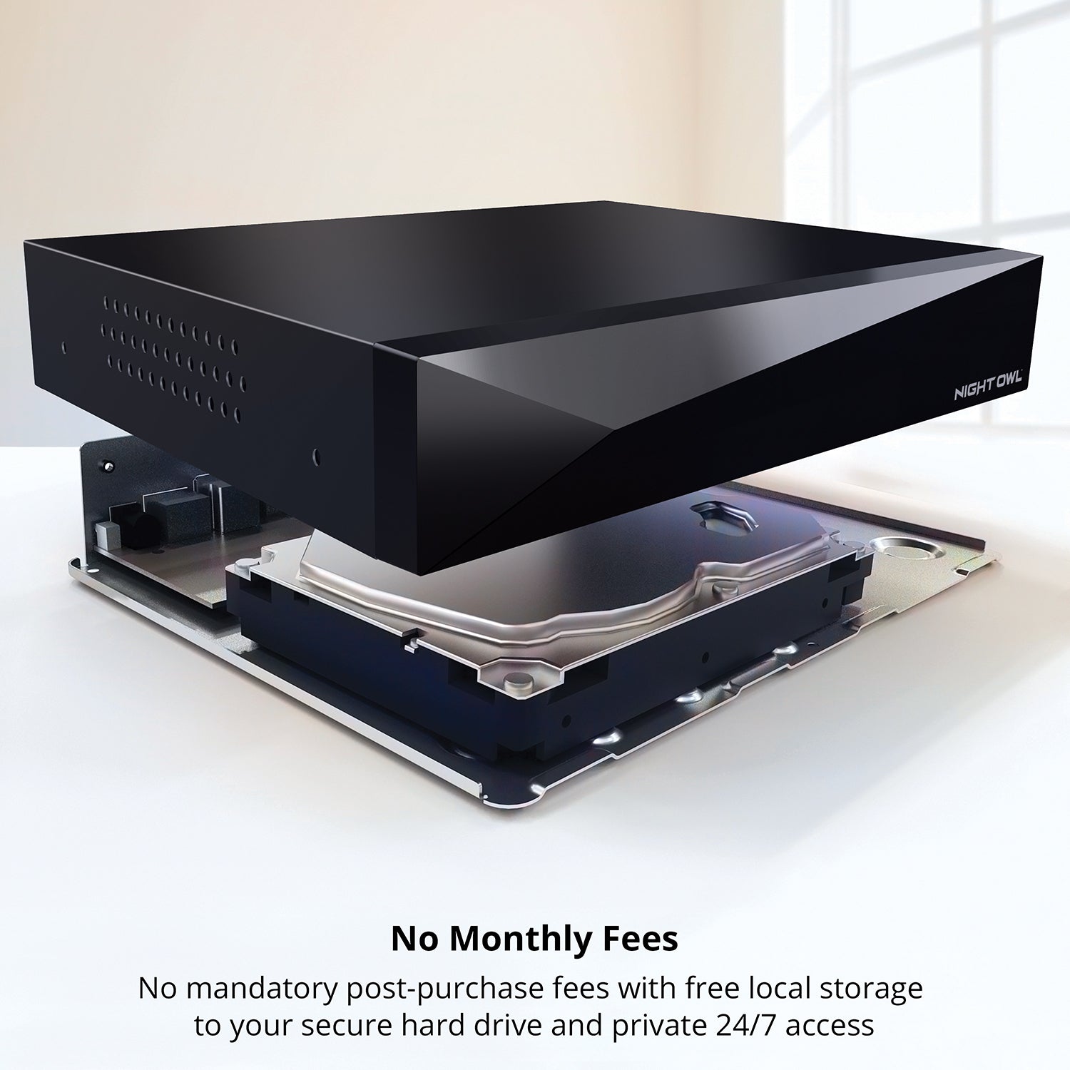 All recordings are stored locally on the pre-installed 2TB hard drive to safeguard your privacy. No hidden costs or subscription fees. *Optional cloud backup storage available.