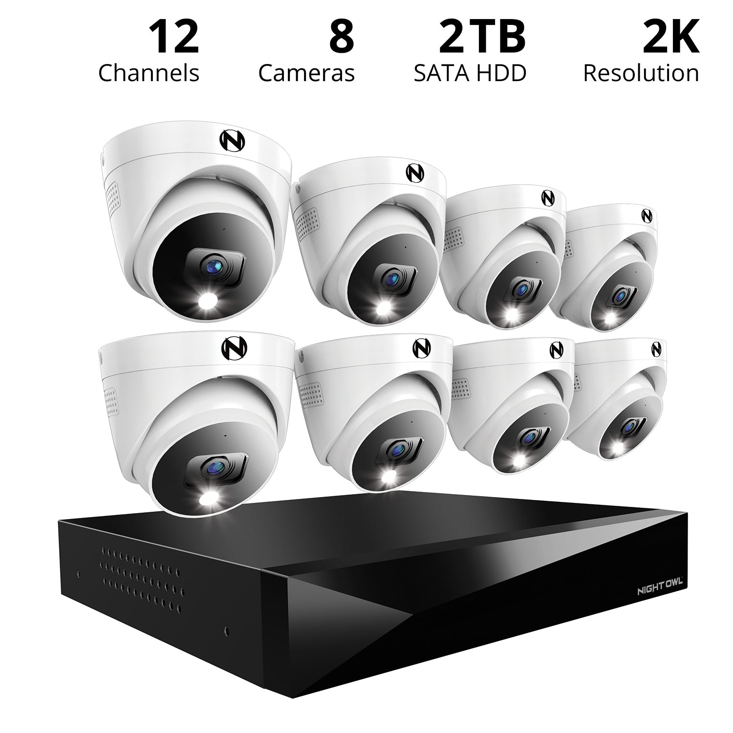 2-Way Audio 12 Channel DVR Security System with 2TB Hard Drive and 8 Wired 2K Deterrence Dome Cameras