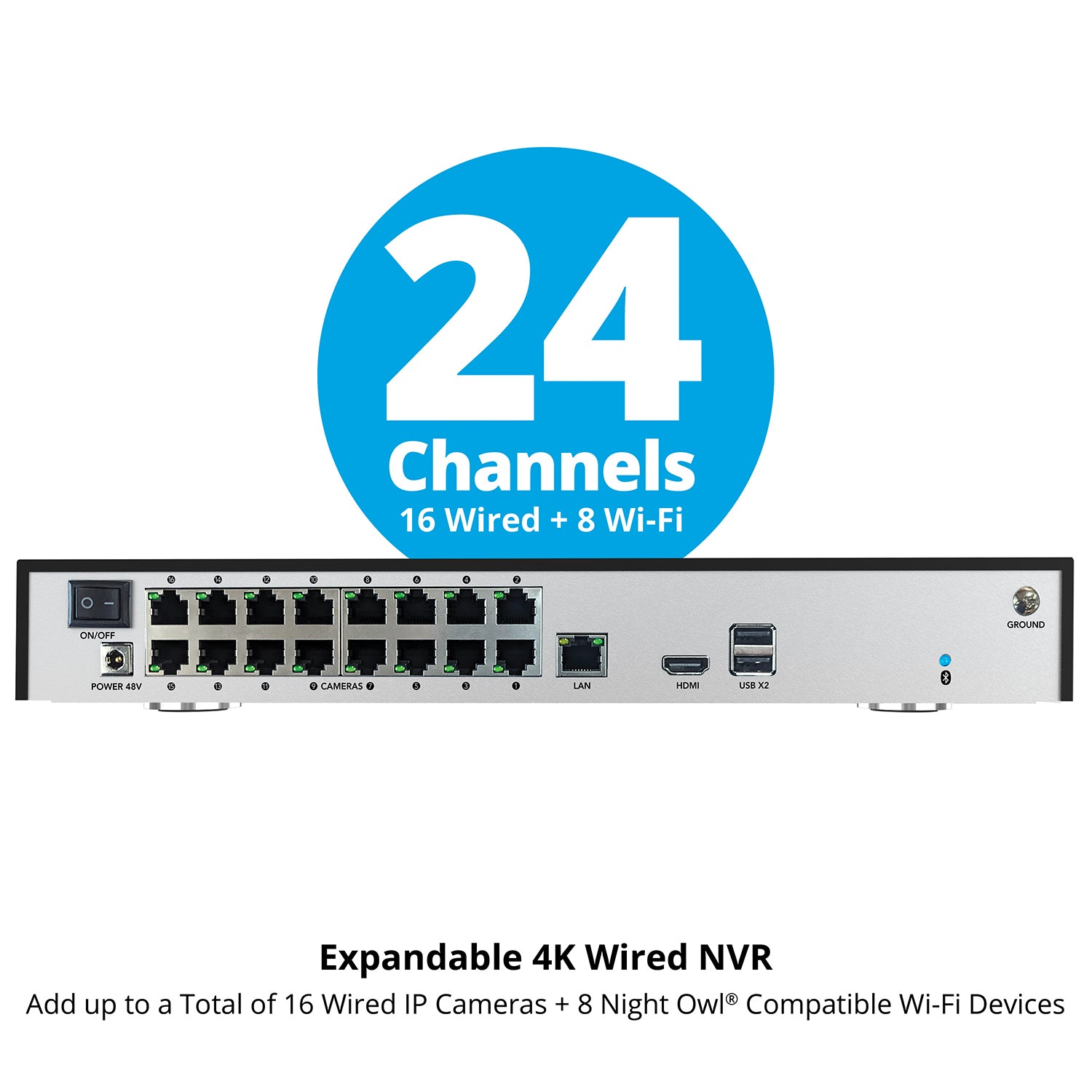 - (1) 24 Channel Wired NVR with 4TB Hard Drive
