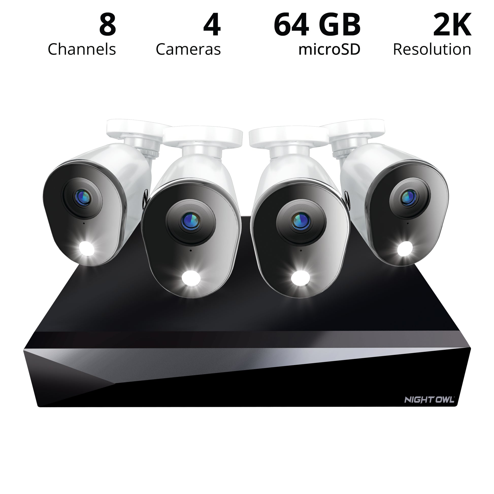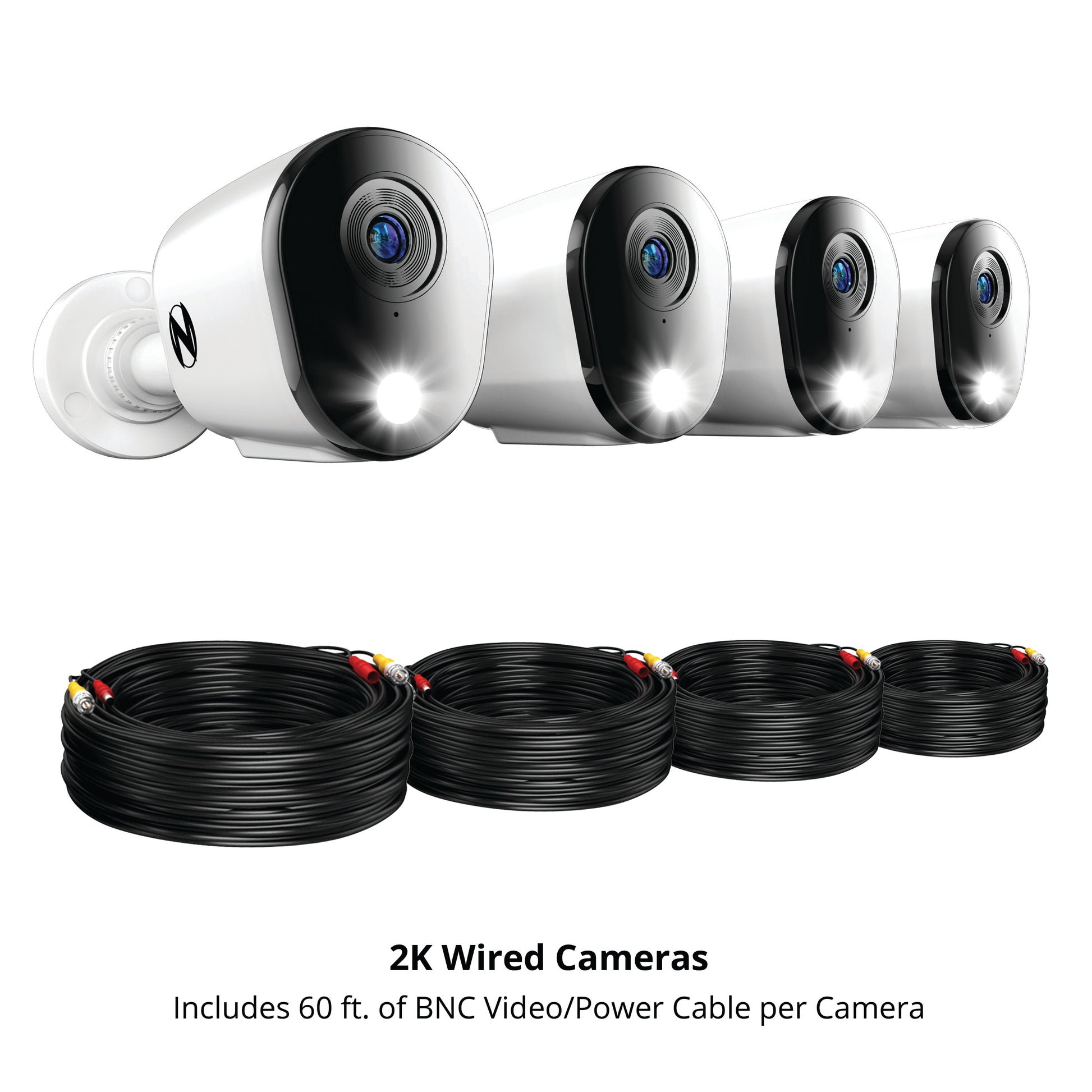 4 Channel 2K DVR with 4 Wired 2K Cameras and 64GB MicroSD Card Expandable up to 4 Additional Wi-Fi Cameras
