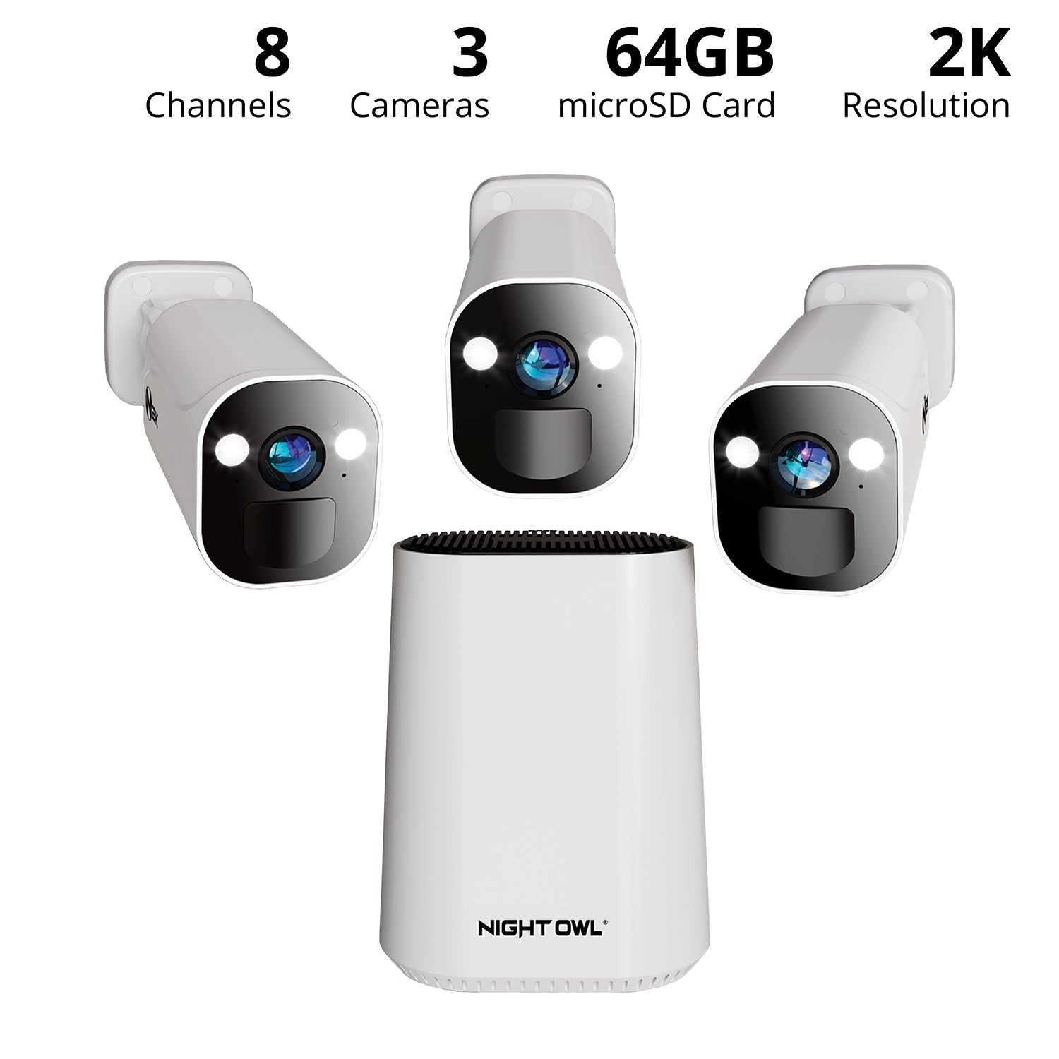 Expandable Wi-Fi Security Hub with 64GB microSD Card and 3 Wire Free 2K Deterrence Cameras