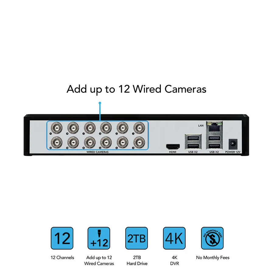 - 4K Ultra HD Wired Standalone DVR with 2TB Pre-Installed Hard Drive