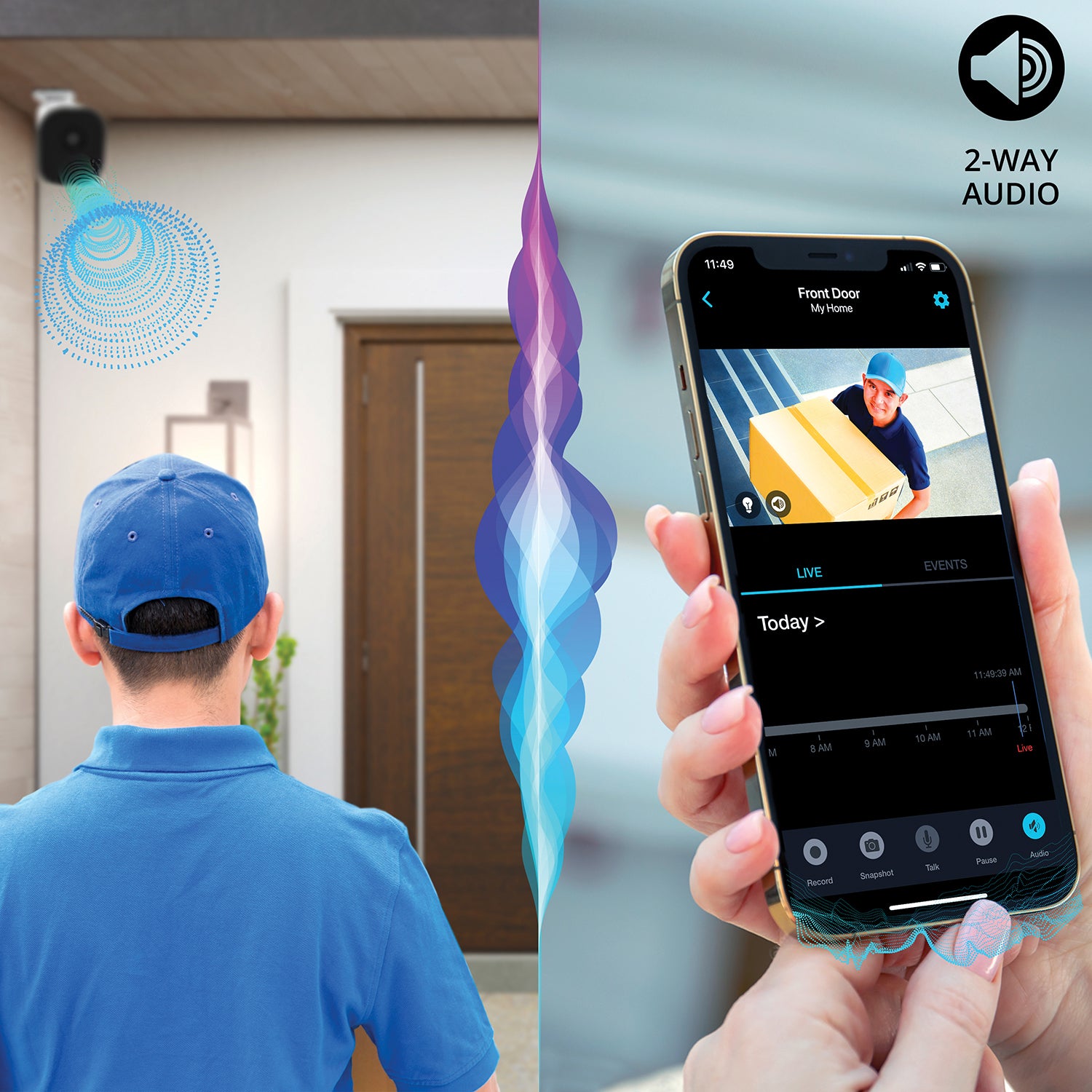 Each camera is equipped with 2-way audio capabilities, allowing you to hear and record sounds as well as speak directly through the camera. Communicate with anyone on your property from any Smart Device using the Night Owl® app’s microphone feature.