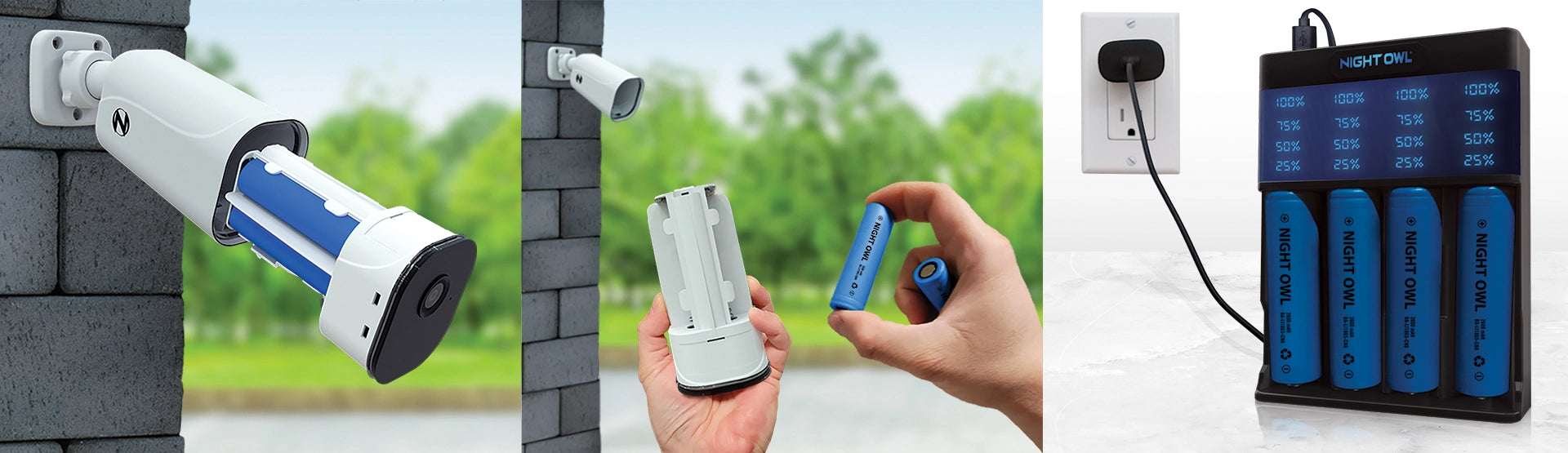 Never miss a beat! Easily swap out the batteries, while the camera stays mounted. Charge the dead batteries using the Night Owl Charger (not included with all models). -