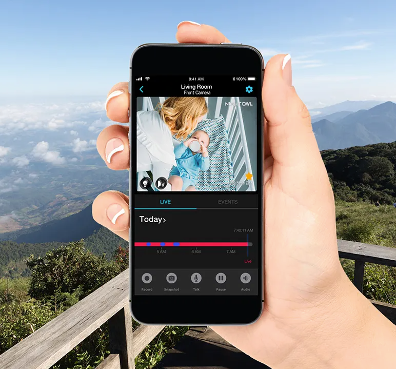 Add the camera(s) to a compatible Night Owl® Wi-Fi NVR or connect to your router via Wi-Fi and view it through our free app. Our free remote viewing app for iOS® and Android™ Smart Devices keeps you connected and provides easy access to your recordings with no fee.