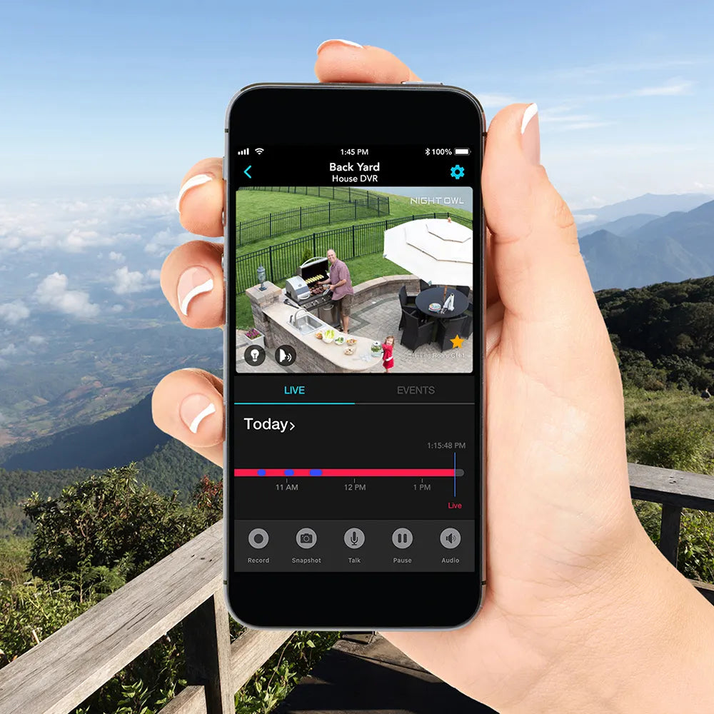 Add the camera to a compatible Night Owl® Wi-Fi NVR or connect to your router via Wi-Fi and view it through our free app. Our free remote viewing app for iOS® and Android™ Smart Devices keeps you connected and provides easy access to your recordings with no fees.